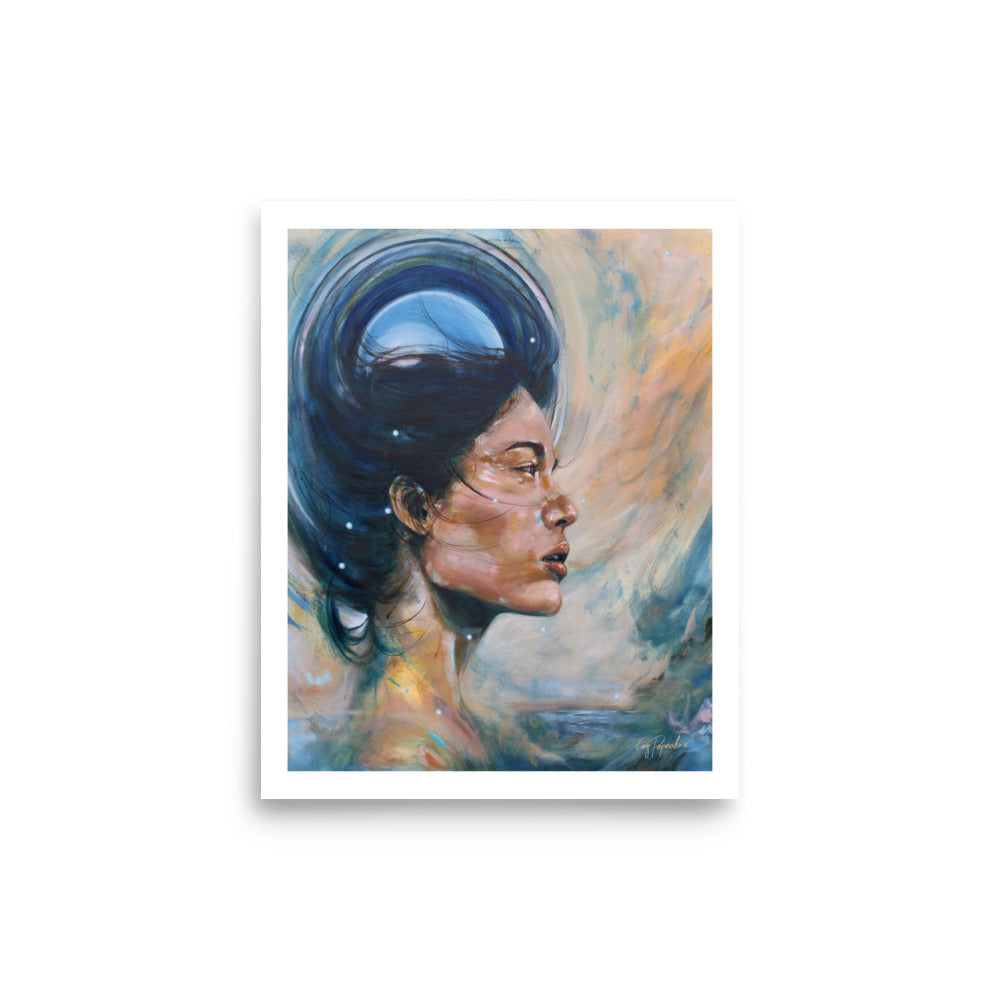 Experience the electrifying rush of Aquarius, a fine art print on museum-quality paper that brings the future to the now, and the now into the future. With her ruling planet, Uranus, glowing in her mind, and the constellation of Aquarius sparking through, Aquarius's passion for innovation is the love she carries into the world.