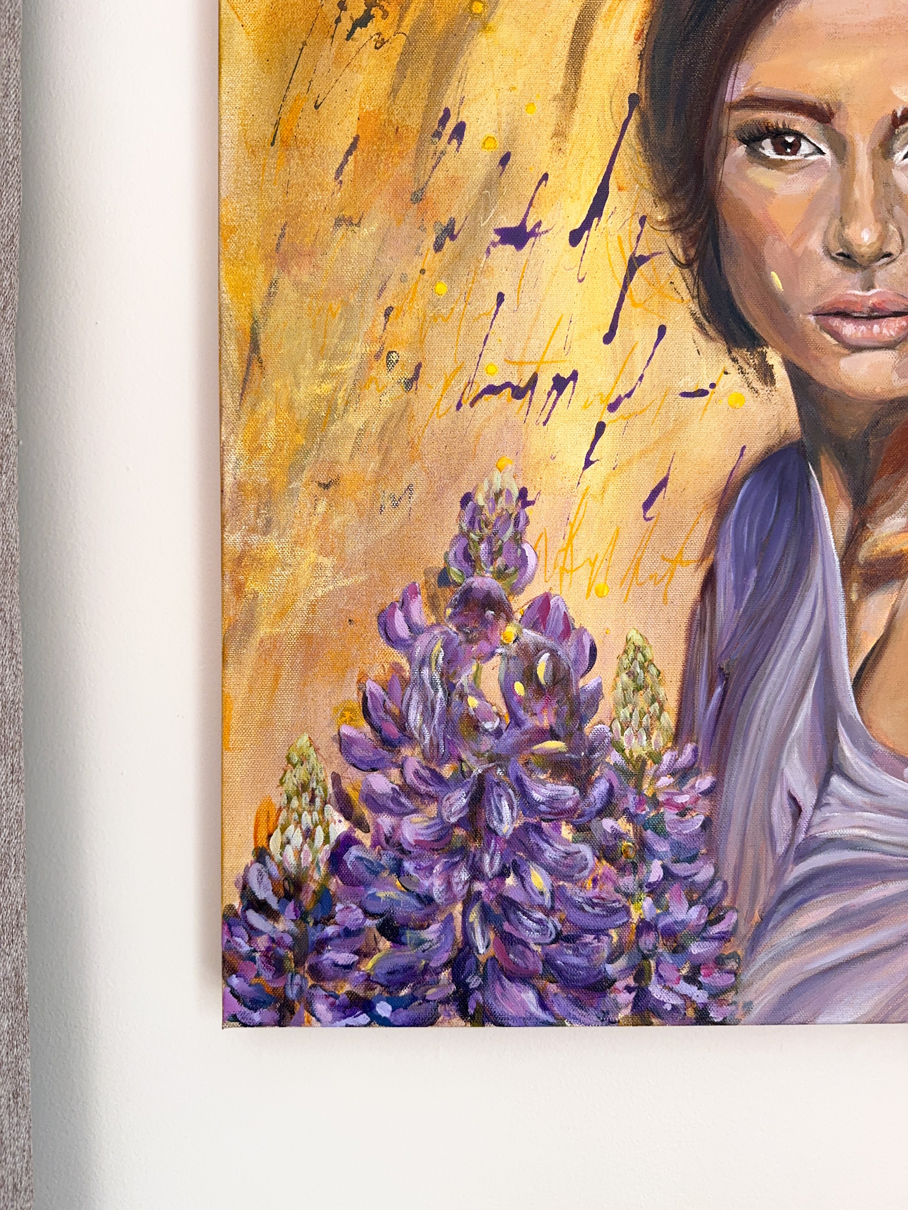 Surround yourself with the irrefutable draw of Blue Bonnet Bravery, a one-of-a-kind original mixed media oil painting that radiates a bravery both powerful and graceful.