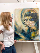 This 30" x 40" original artwork is masterfully created with mixed media and oils on gallery-wrapped canvas, ready to hang and make a statement in any space. Perfect for astrology enthusiasts, art collectors, or anyone drawn to celestial symbolism and zodiac art.