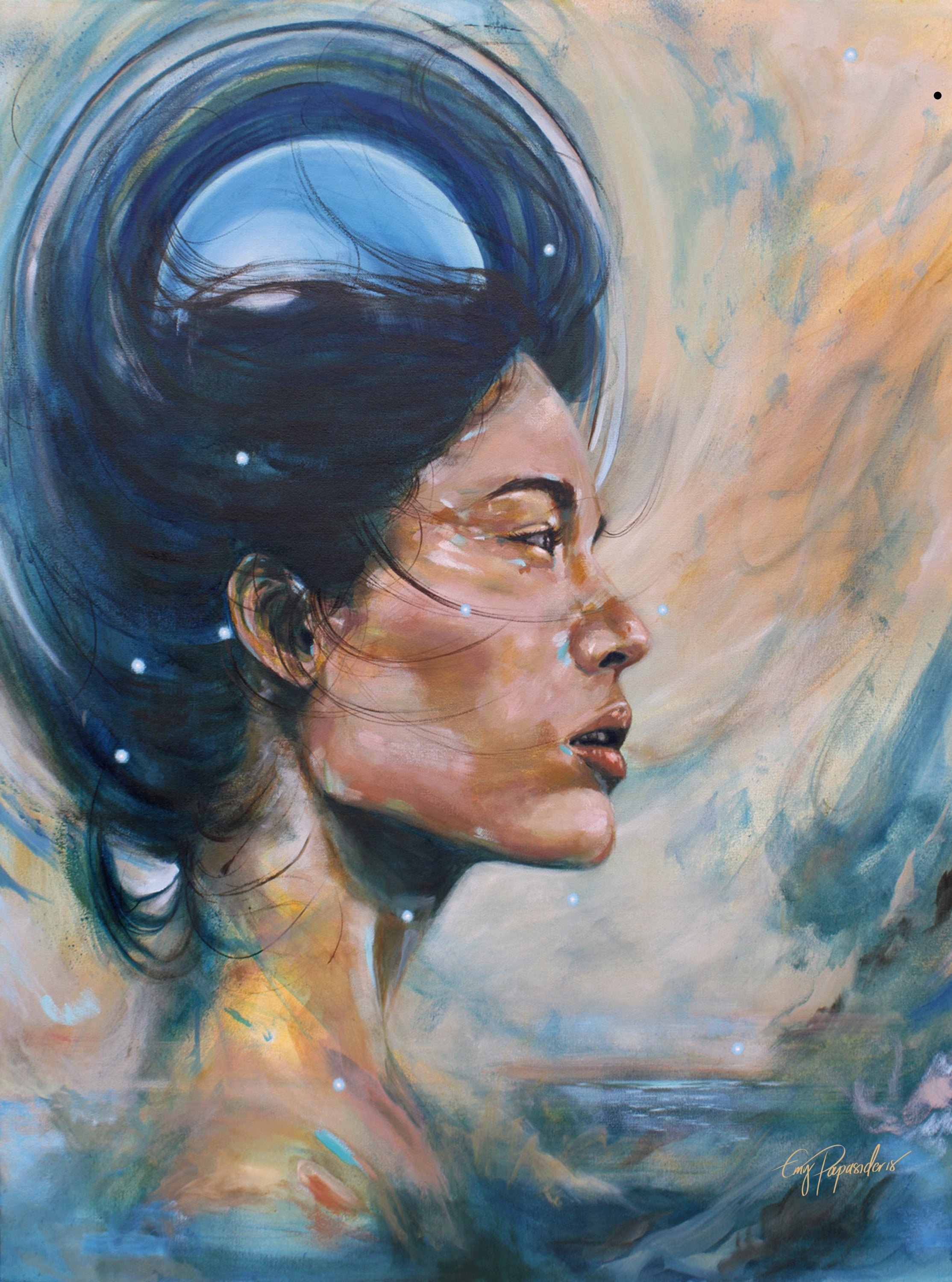Experience the electrifying rush of Aquarius, a fine art print on museum-quality paper that brings the future to the now, and the now into the future. With her ruling planet, Uranus, glowing in her mind, and the constellation of Aquarius sparking through, Aquarius's passion for innovation is the love she carries into the world.