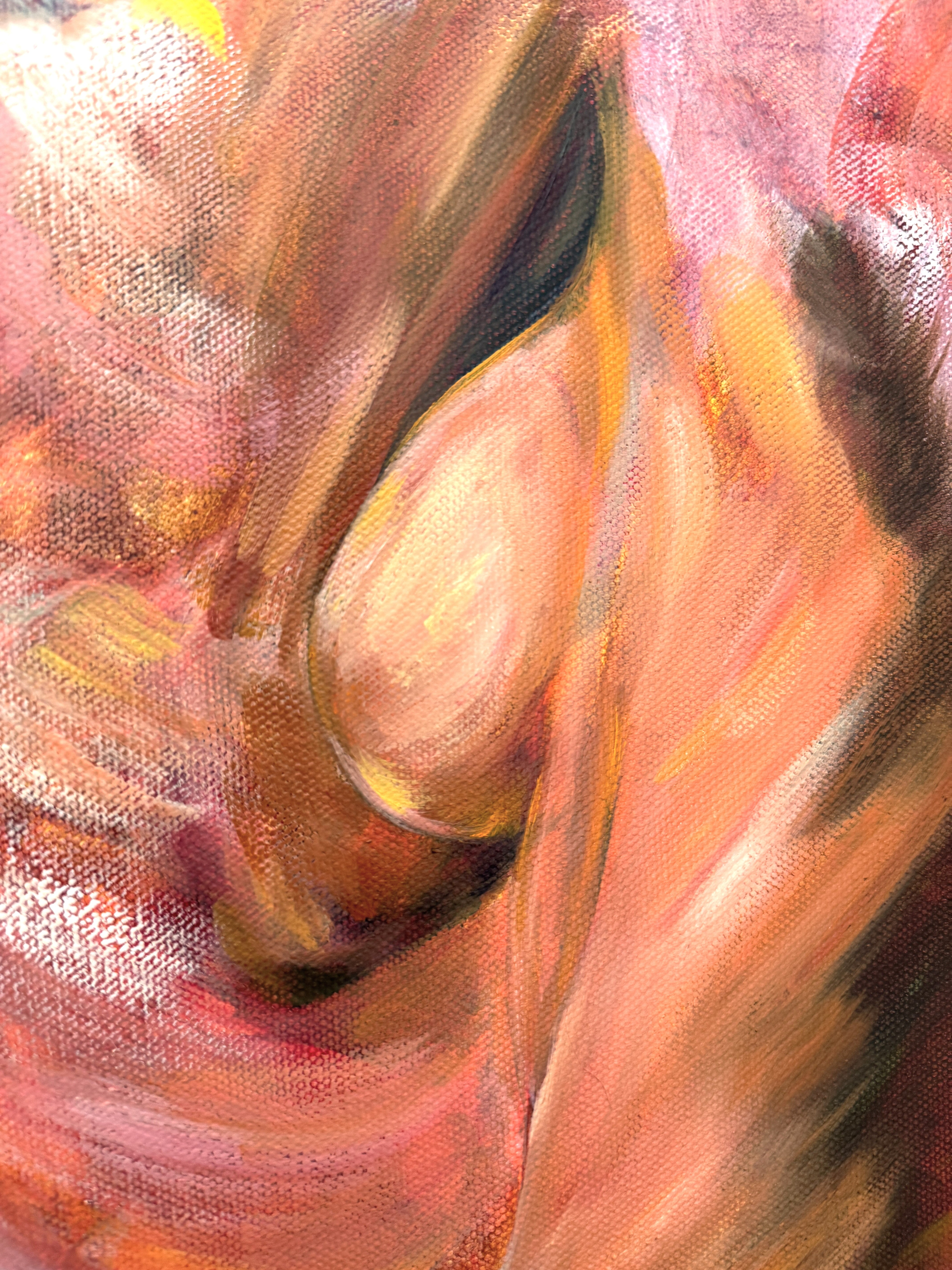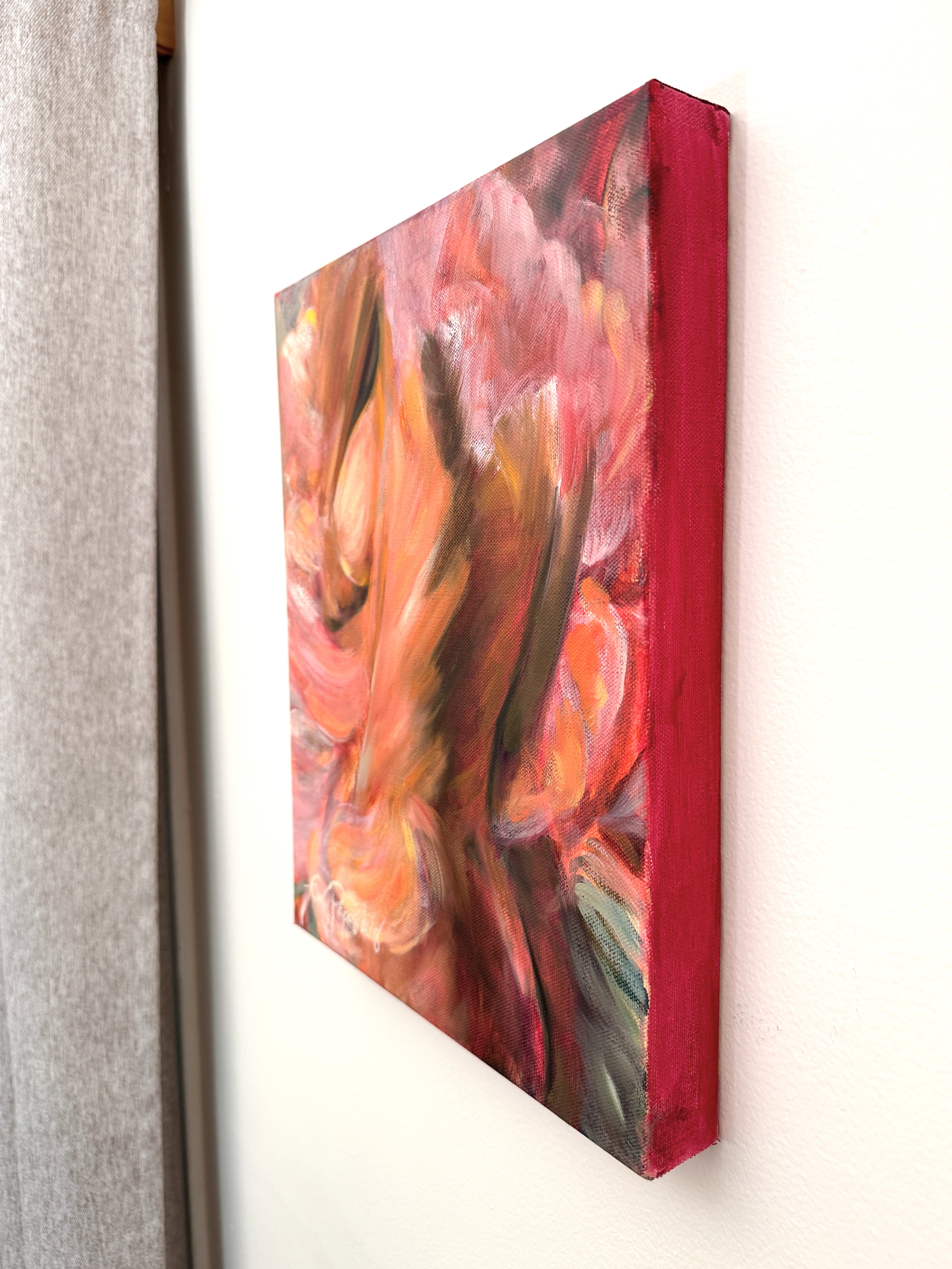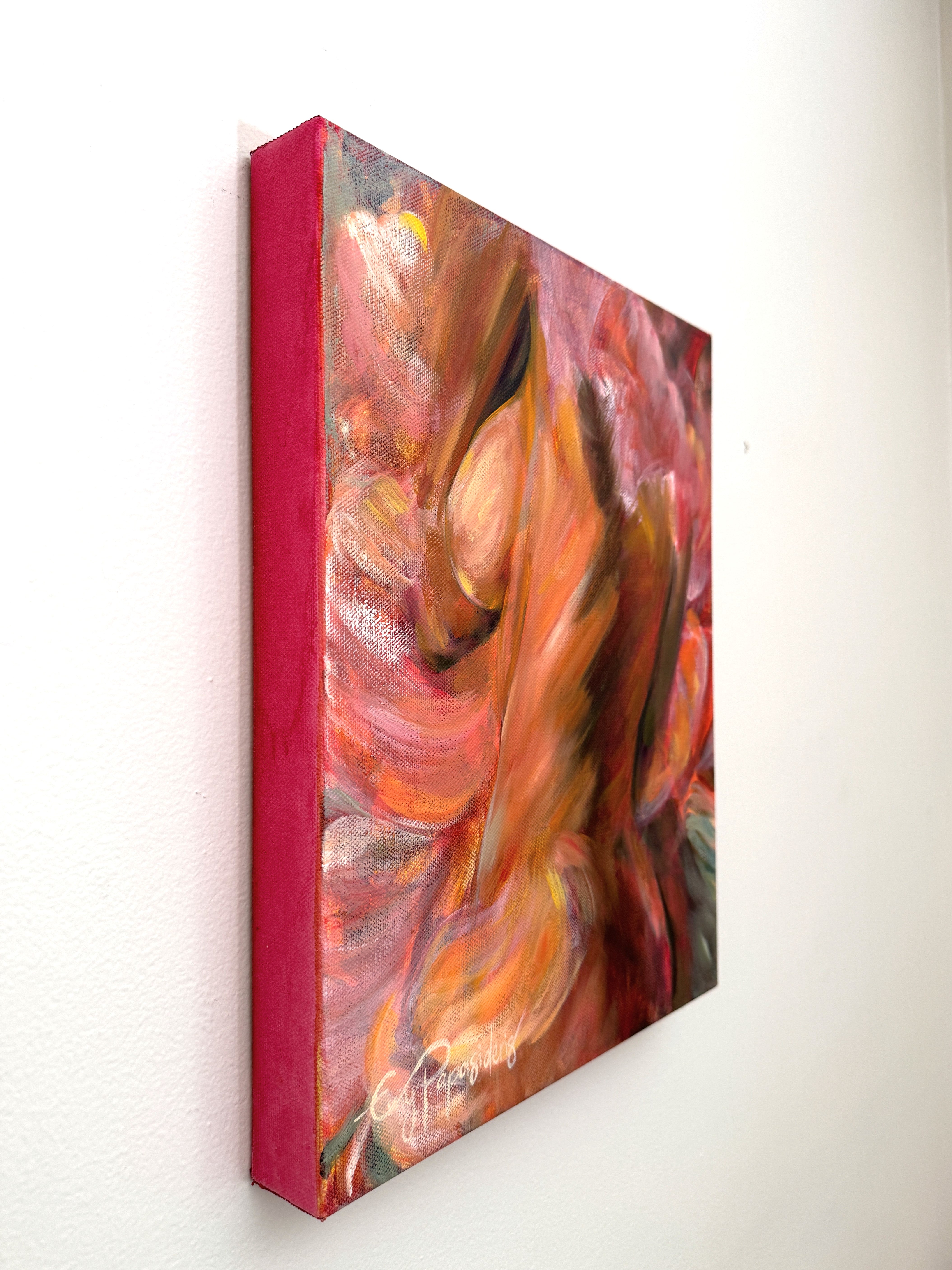 Immerse yourself in the warming brightness of Honey Blossom, an original mixed media oil painting that bursts with the joy of love growing like light.
